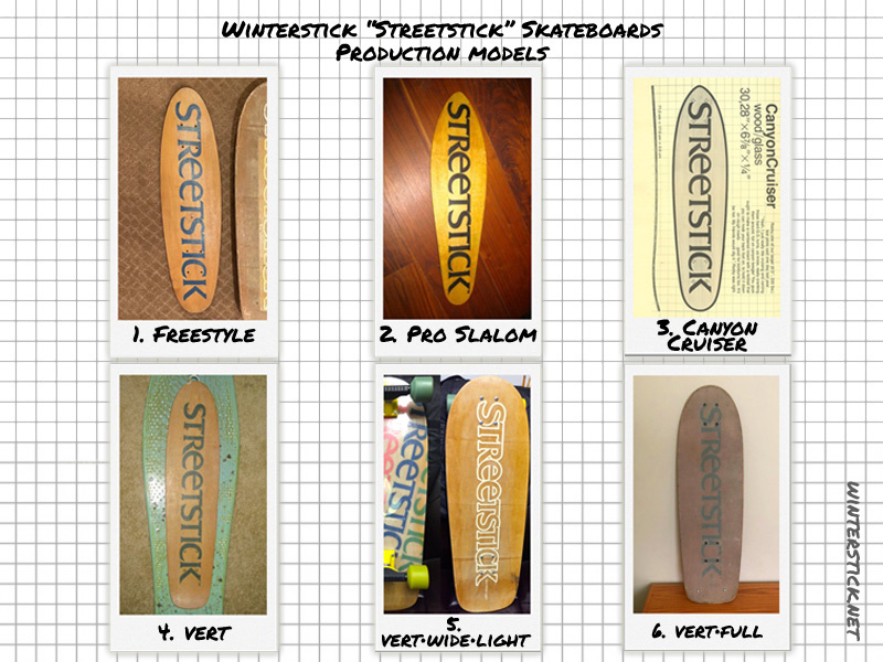 Before the first offcial production run of snow-surfboards, Winterstick made skateboards called "Streetsticks" as their first offerings. This would help build up some pre-launch Winterstick hype since there was plenty of crossover between the two sports. It also bought some time as the official first issue of Yellow Roundtail snow-surfoboards were still being dialed in.